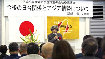 黄氏は、大学の先生らしく、じっくり時間を掛けて教える方。 台湾を語るには6時間かかるという氏は、今講演の時間では